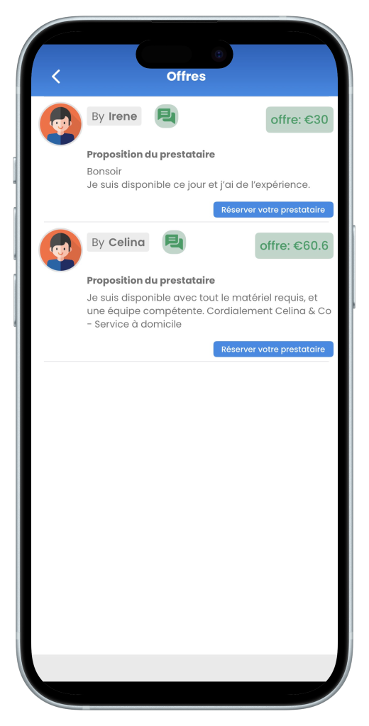 Publiez votre demande, discutez avec les prestataires, et réservez directement depuis l’application. Tout est simple, rapide et sécurisé.